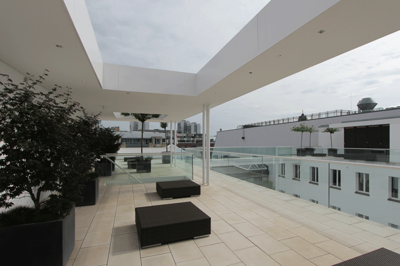 Auf den Wunsch des Bauher- ren, eine attraktive Haupt- stadt-Repräsentanz zu er- richten, sollte ein klassizis- tisches Gebäude in ein Mul- tifunktionsgebäude umge- wandelt werden. Durch sen- sible Eingriffe in die denk- malgeschützte Bausubstanz wurde der schwere Cha- rakter des einstigen Bank- gebäudes in einen leichten und transparenten Baukör- per umgeformt, der Räum- lichkeiten für Veranstaltun- gen und Büros vereint. Eine klare Linie, erzielt durch de- taillierte Ausbauplanung der einzelnen Räume und die Wahl hochwertiger Materi- alien, reflektiert den hohen Anspruch des Bauherren.