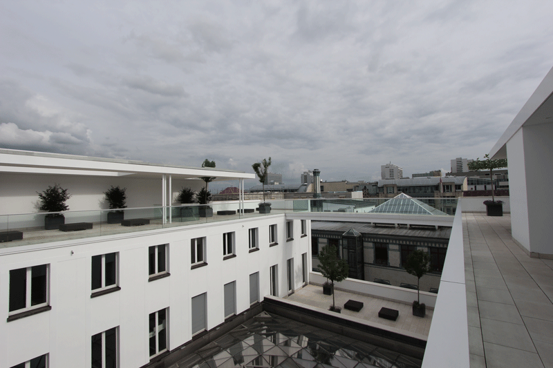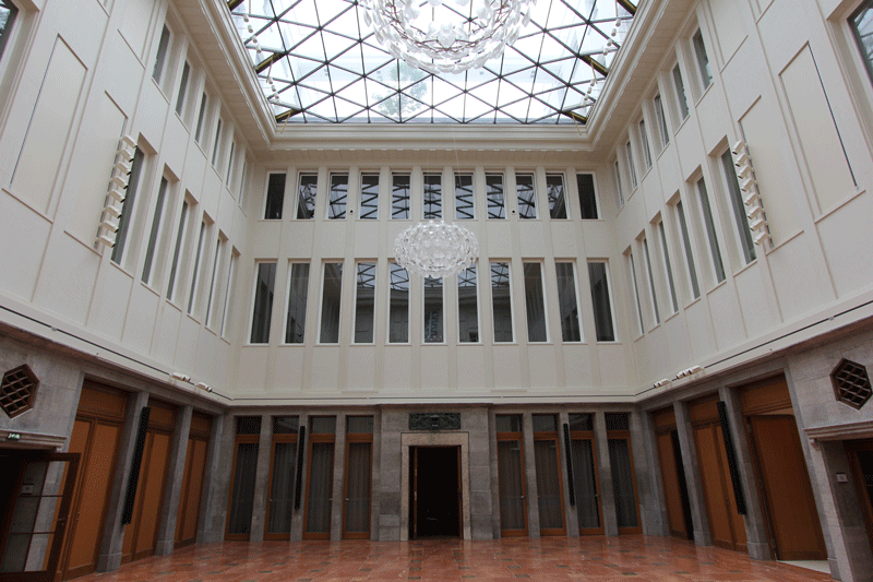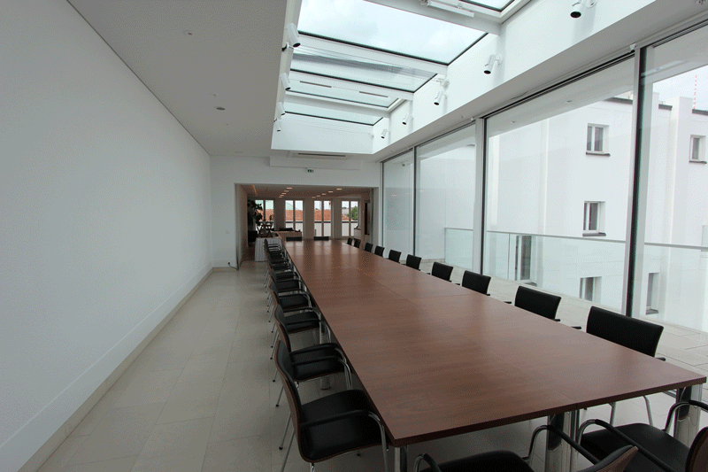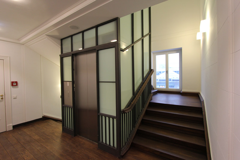Auf den Wunsch des Bauher- ren, eine attraktive Haupt- stadt-Repräsentanz zu er- richten, sollte ein klassizis- tisches Gebäude in ein Mul- tifunktionsgebäude umge- wandelt werden. Durch sen- sible Eingriffe in die denk- malgeschützte Bausubstanz wurde der schwere Cha- rakter des einstigen Bank- gebäudes in einen leichten und transparenten Baukör- per umgeformt, der Räum- lichkeiten für Veranstaltun- gen und Büros vereint. Eine klare Linie, erzielt durch de- taillierte Ausbauplanung der einzelnen Räume und die Wahl hochwertiger Materi- alien, reflektiert den hohen Anspruch des Bauherren.