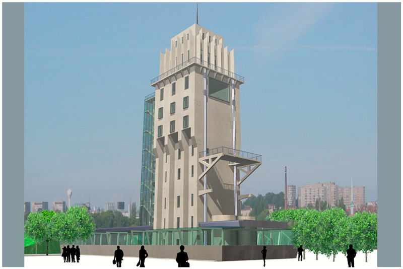 Am Oderufer, im Herzen der Stadt Stettin, steht dieses 50m hohe Industriedenk- mal, eines der ersten voll- ständigen Stahlbetonbau- ten Deutschlands. Durch die gezielten Sanierungsmaß- nahmen für eine neue Nut- zung wird der weitere Verfall des Objektes gestoppt. Be- sonderer Augenmerk gilt dabei dem Erhalt und der Instandsetzung der Stahl- betonfassaden sowie der zahlreichen Industriedetails.