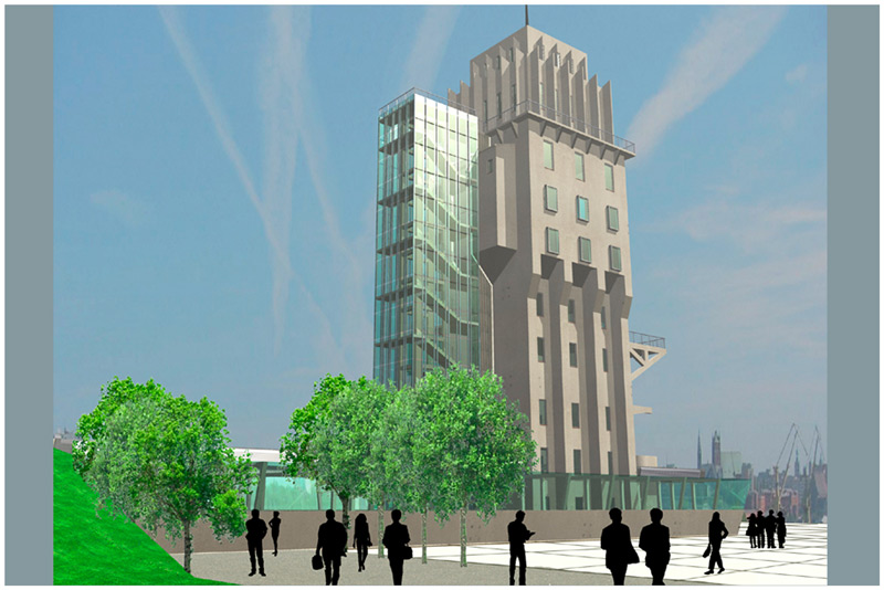 Am Oderufer, im Herzen der Stadt Stettin, steht dieses 50m hohe Industriedenk- mal, eines der ersten voll- ständigen Stahlbetonbau- ten Deutschlands. Durch die gezielten Sanierungsmaß- nahmen für eine neue Nut- zung wird der weitere Verfall des Objektes gestoppt. Be- sonderer Augenmerk gilt dabei dem Erhalt und der Instandsetzung der Stahl- betonfassaden sowie der zahlreichen Industriedetails.